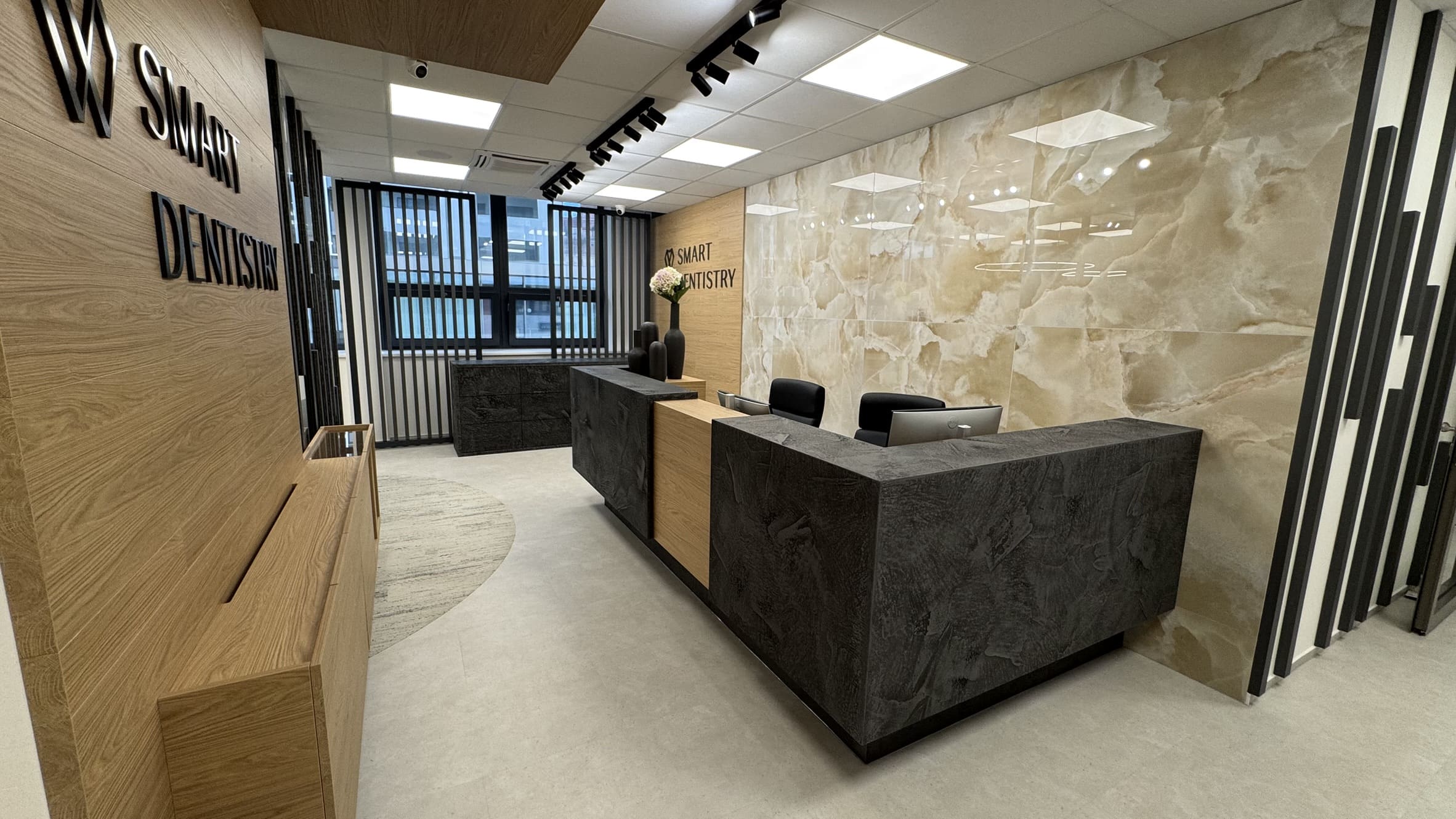 Navrhli a kompletně realizovali jsme interiér nové dentální kliniky Smart Dentistry v Brně, kde jsme spojili estetiku s funkčností a vytvořili moderní prostředí, které pacientům navozuje pocit klidu a důvěry hned při vstupu.